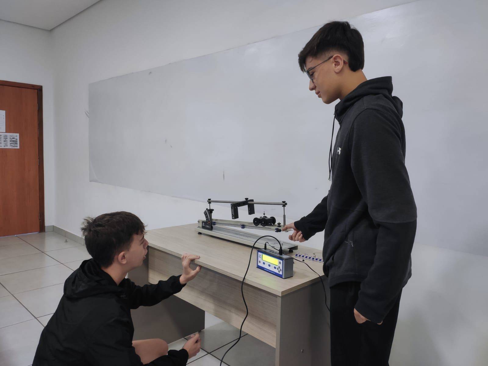 Os alunos da Rota Exata do 1º ano do Ensino Médio participaram de uma aula prática de Física com a professora Camila Colombari, utilizando um plano inclinado! Medindo o tempo de descida do carro sobre a superfície do plano inclinado, os alunos calcularam a velocidade final do objeto e a aceleração da gravidade no laboratório. Uma oportunidade única de entender como os antigos cientistas faziam suas descobertas!