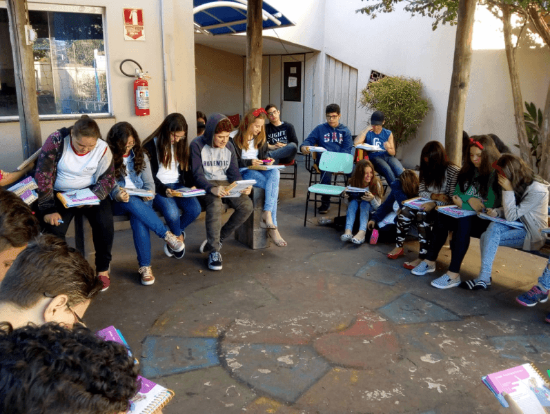 Os alunos do oitavo ano e a professora Maiara promoveram uma roda de conversa sobre fake news. Os alunos discutiram sobre as formas de identificar notícias falsas e também começaram a planejar uma campanha comunitária para conscientização sobre o tema. O trabalho terá prosseguimento nas próximas aulas com a produção da campanha comunitária.