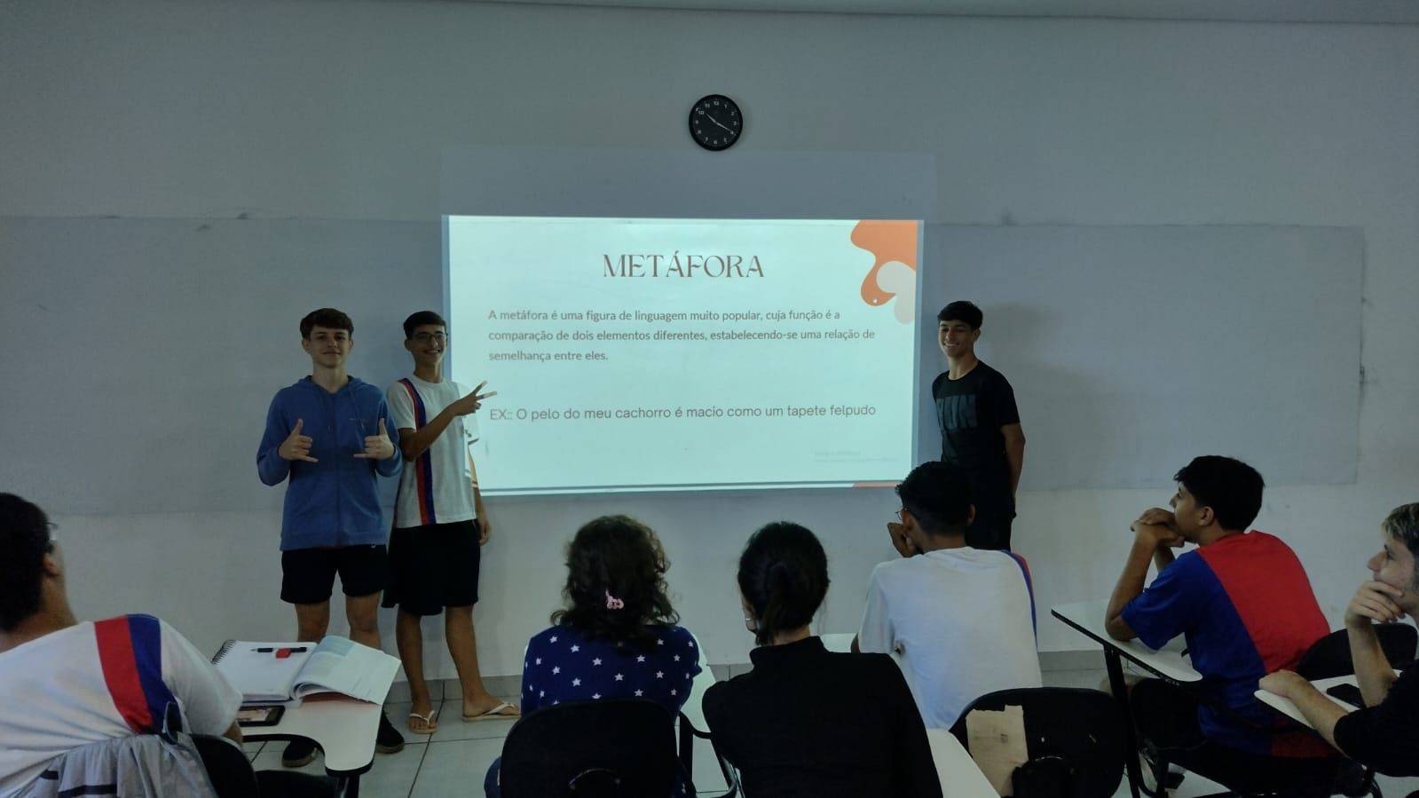 Os alunos do Itinerário "O mundo se comunica", sob a orientação da professora Maiara Fernandes, compartilharam seus conhecimentos sobre Figuras de Linguagem.