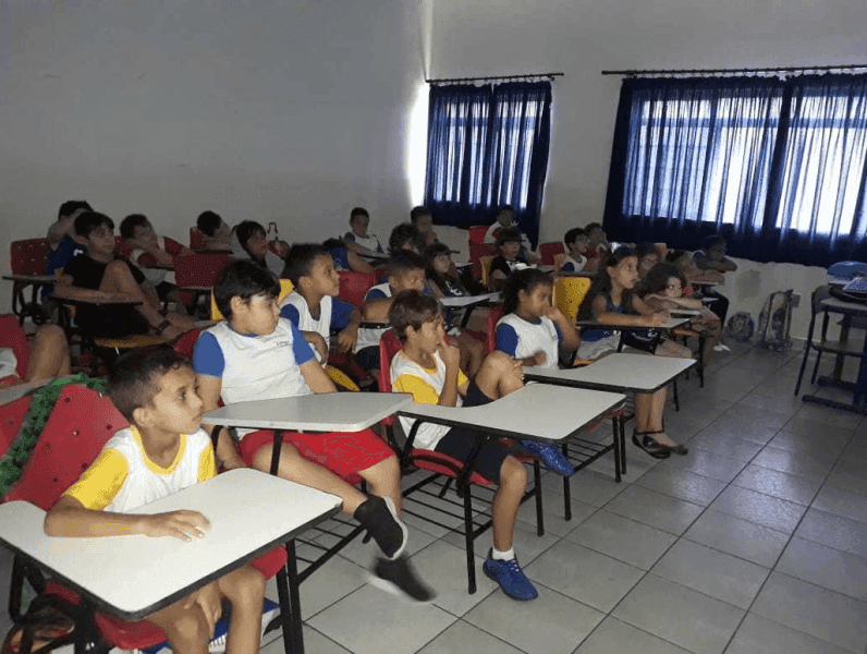 Os alunos do 2º e do 3º ano do Ensino Fundamental e as professoras Luciene e Tatiane desenvolveram uma atividade com o objetivo de ressaltar a importância da preservação da água. Os alunos assistiram a um filme sobre o tema e aprenderam sobre os cuidados que se pode tomar para evitar o desperdício desse bem tão precioso.