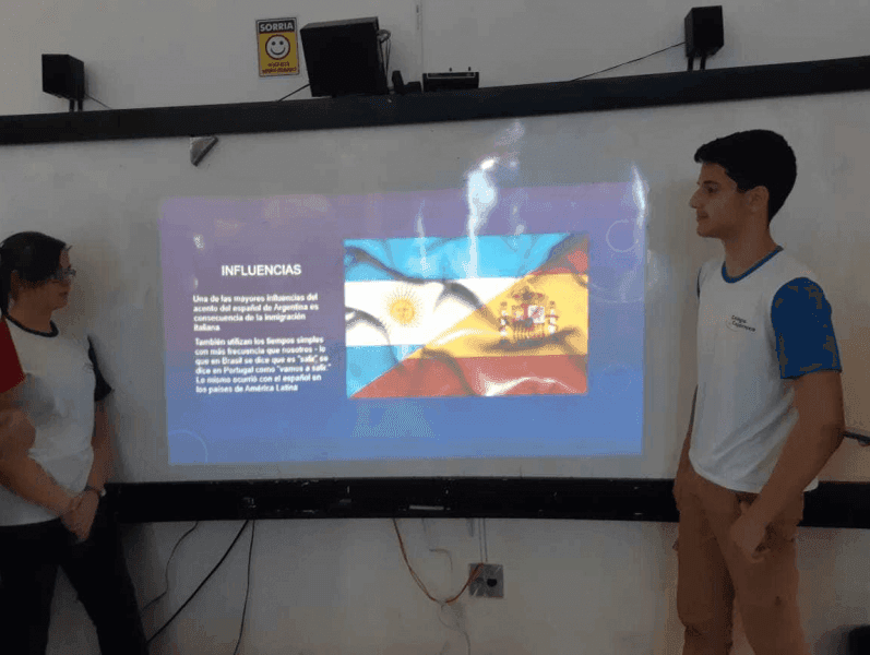 Alunos do 9º ano realizaram uma pesquisa e sintetizaram através de slides as diferenças culturais e de vocabulário dos países España e Argentina. Maestra Angelica.