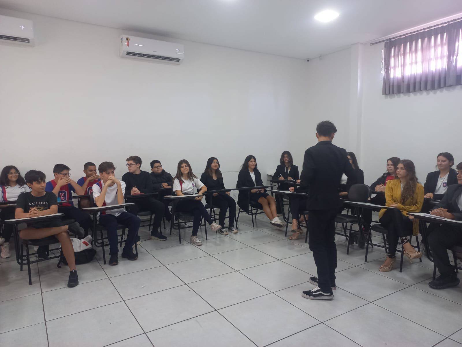 Os alunos são apresentados a um tema específico do currículo escolar. A partir daí, eles estudam, analisam e discutem em grupos, destacando os interesses e habilidades de cada um. O processo culmina na apresentação do Júri, desenvolvendo a capacidade de argumentação, organização e trabalho em equipe.