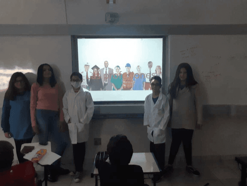 A turminha do 6º ano fizeram uma belíssima apresentação em Espanhol com a professora Angélica sobre "Las Profesiones y los Establecimientos".