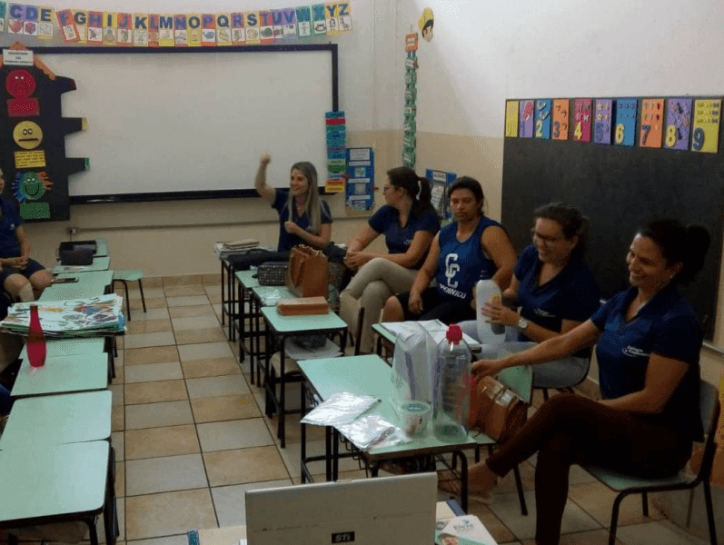 Os professores da Educação Infantil e do Ensino Fundamental I participaram de reuniões pedagógicas e capacitações sobre a metodologia Maker. Além de conhecer melhor as técnicas de metologias ativas, os docentes tiveram de praticá-las, planejando aulas.