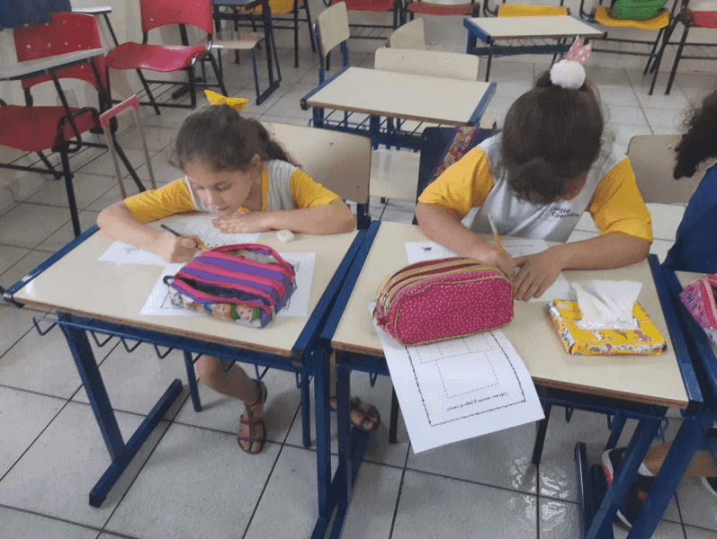 Os alunos do 2º ano estão aprendendo com a professora Angélica de Língua Espanhola partes "del cuerpo humano". Durante a aula, eles desenvolveram atividades de recorte e colagem e ilustraram a atividade do dia.