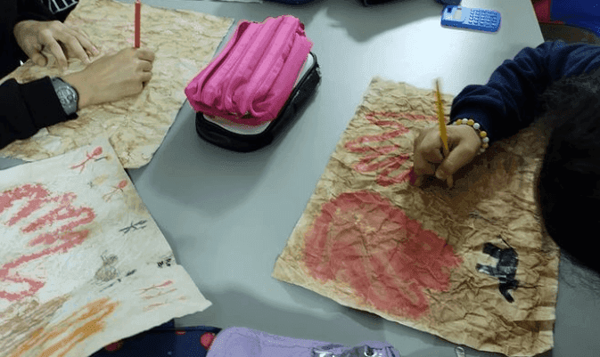 Arte primitiva - Os alunos do 6° ano aprendem como foi a chegada dos primeiros humanos nas americanas e na aula de artes simulam o conceito rupestre.