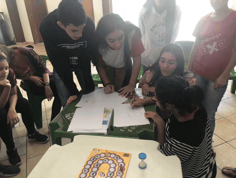 Desta vez a turma do Ensino Médio e professora Talita desenvolveram mais uma prova surpresa, o jogo foi de perguntas e respostas com mímicas, expressão corporal e desenho. Houve muita criatividade!