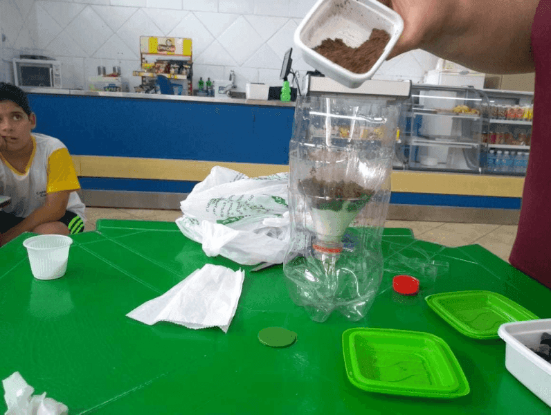 Alimento tem água? Essa foi a pergunta para a aula de ciências do 5 ano. Em um experimento com batata os alunos provaram que os alimentos tem líquido e depois fizeram um filtro de água com a Professora Viviane.