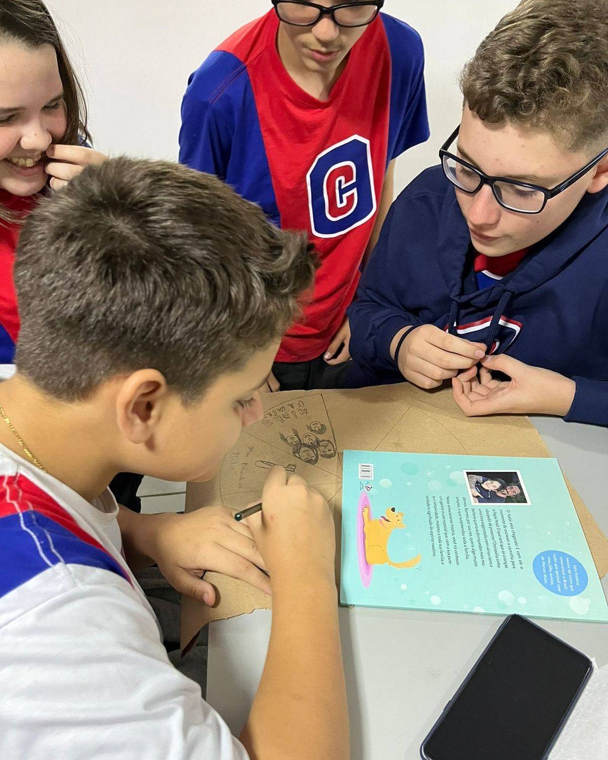 Em parceria com a disciplina de Língua Portuguesa, os alunos do 6º ano fizeram uma "Pizza literária", na aula maker.