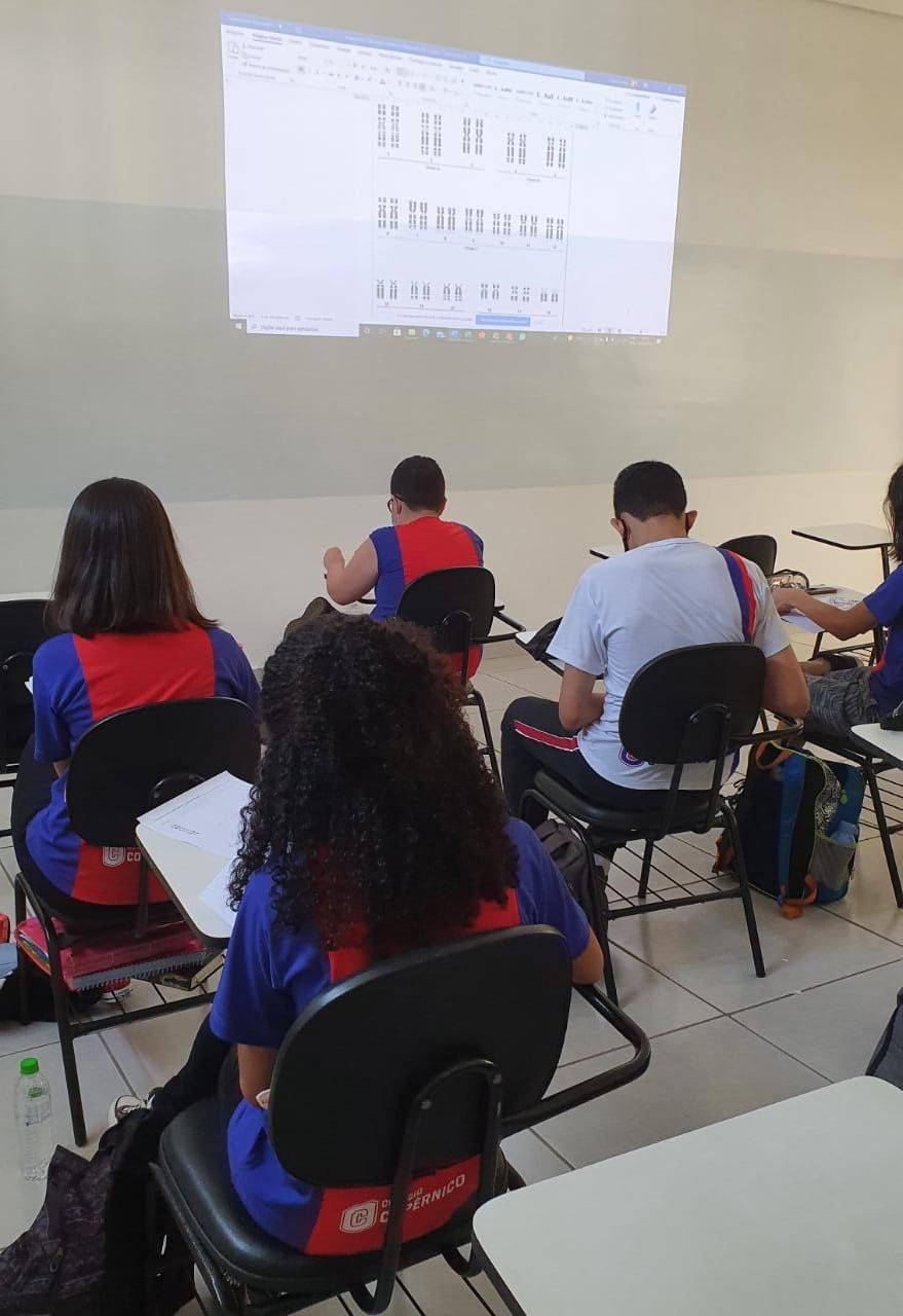 Nas aulas de ciências com a prof. Laura, os alunos do 8° ano aprenderam a estruturar o cariótipo humano e diagnosticar as diferentes anomalias cromossômicas que ocasionam as Síndromes de Down e de Turner.