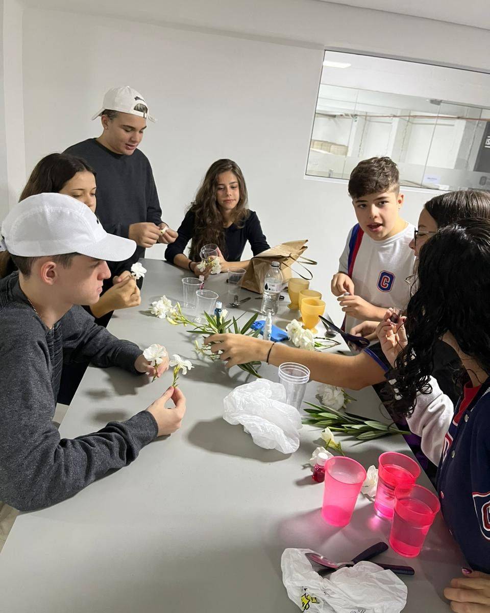 A turma do 9º ano tiveram abordaram o tema "Cromatografia e condução da seiva", na aula maker. . Os alunos trouxeram diversas cores de corante e o resultado foram lindas flores coloridas.