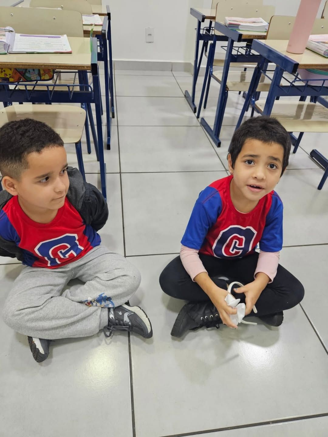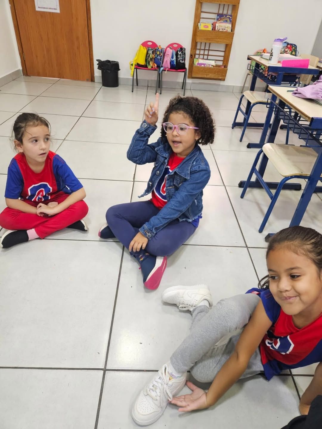 Durante o “Super Desafio das Sílabas”, cada estudante foi incentivado a pensar e dizer uma palavra que começasse com a mesma sílaba do seu nome, estimulando a consciência fonológica de forma lúdica e participativa.