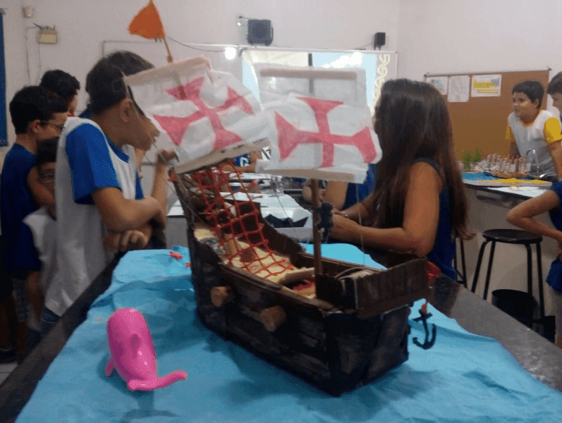 Os alunos do 4º ano e a professora Alessandra estão desenvolvendo neste bimestre um trabalho sobre o descobrimento do Brasil e as grandes navegações. O clima durante as atividades foi de muita alegria e aprendizagem. Cada aluno trabalhou um aspecto relacionado ao tema, montando cartazes, desenhos e depois fizeram uma bela exposição para os pais e os demais alunos do colégio.