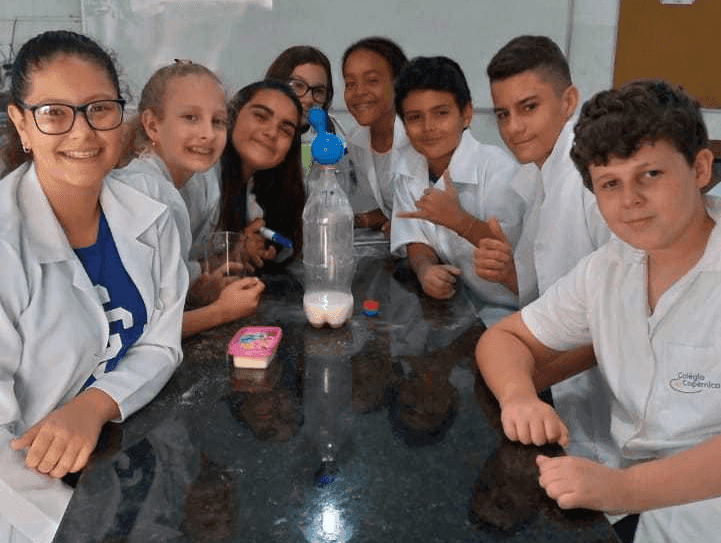 A fermentação é um processo simples de catabolismo, no qual há também liberação de gás carbônico, tanto quanto na respiração celular. Os alunos do 7° ano fizeram um experimento, com a Prof. Laísla, com o objetivo de demonstrar a reação química e a liberação de gás a partir de outras substâncias.
