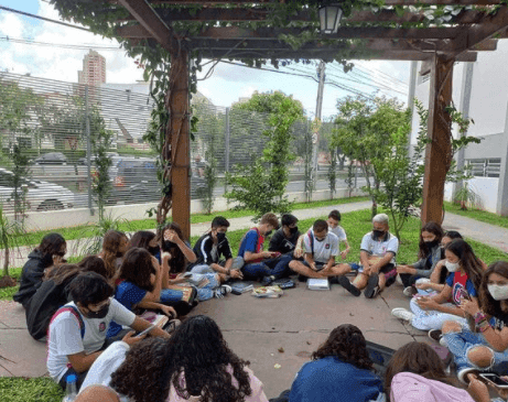 Na aula de História, os educandos do 8 ano, puderam debater coletivamente os exercícios sobre a importância dos ideias iluministas para nossa liberdade individual. E tudo isso no bosque da nossa escola! A aprendizagem ao ar livre potencializa o aprimoramento intelectual e possibilita maior participação, integração e socialização dos alunos, além do desenvolvimento do senso crítico e capacidade de resolver problemas.