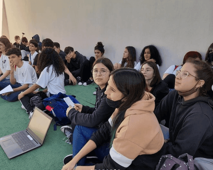 Os alunos do 7° ano buscaram inspiração ao ar livre para produzir minicontos, gênero textual que prioriza concisão e narratividade.