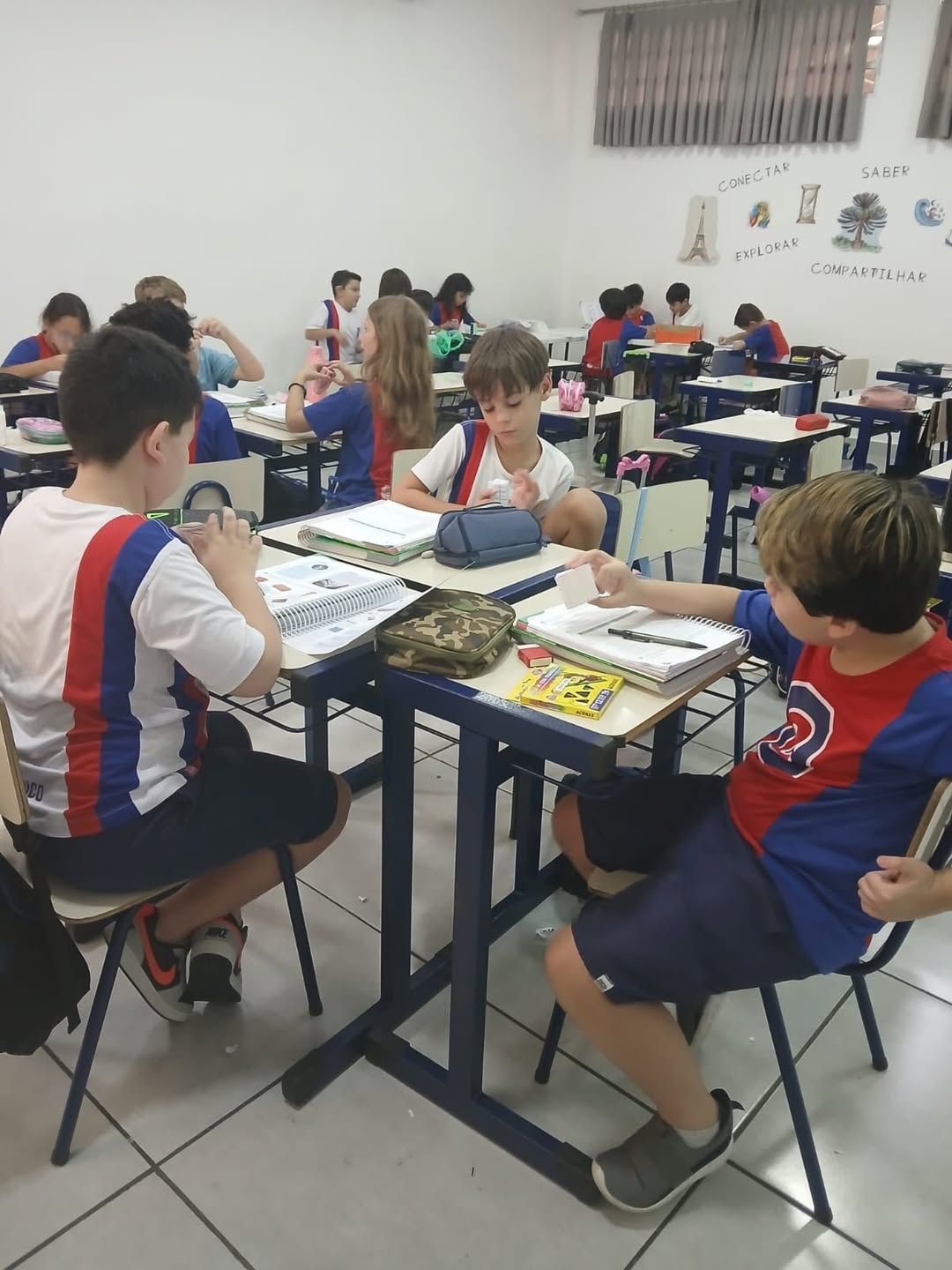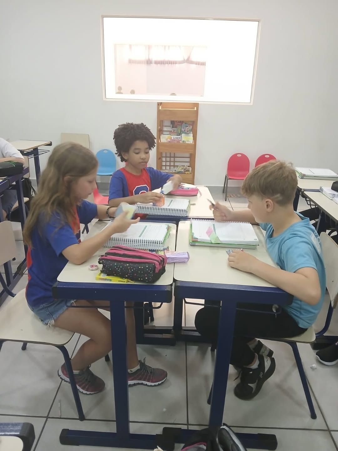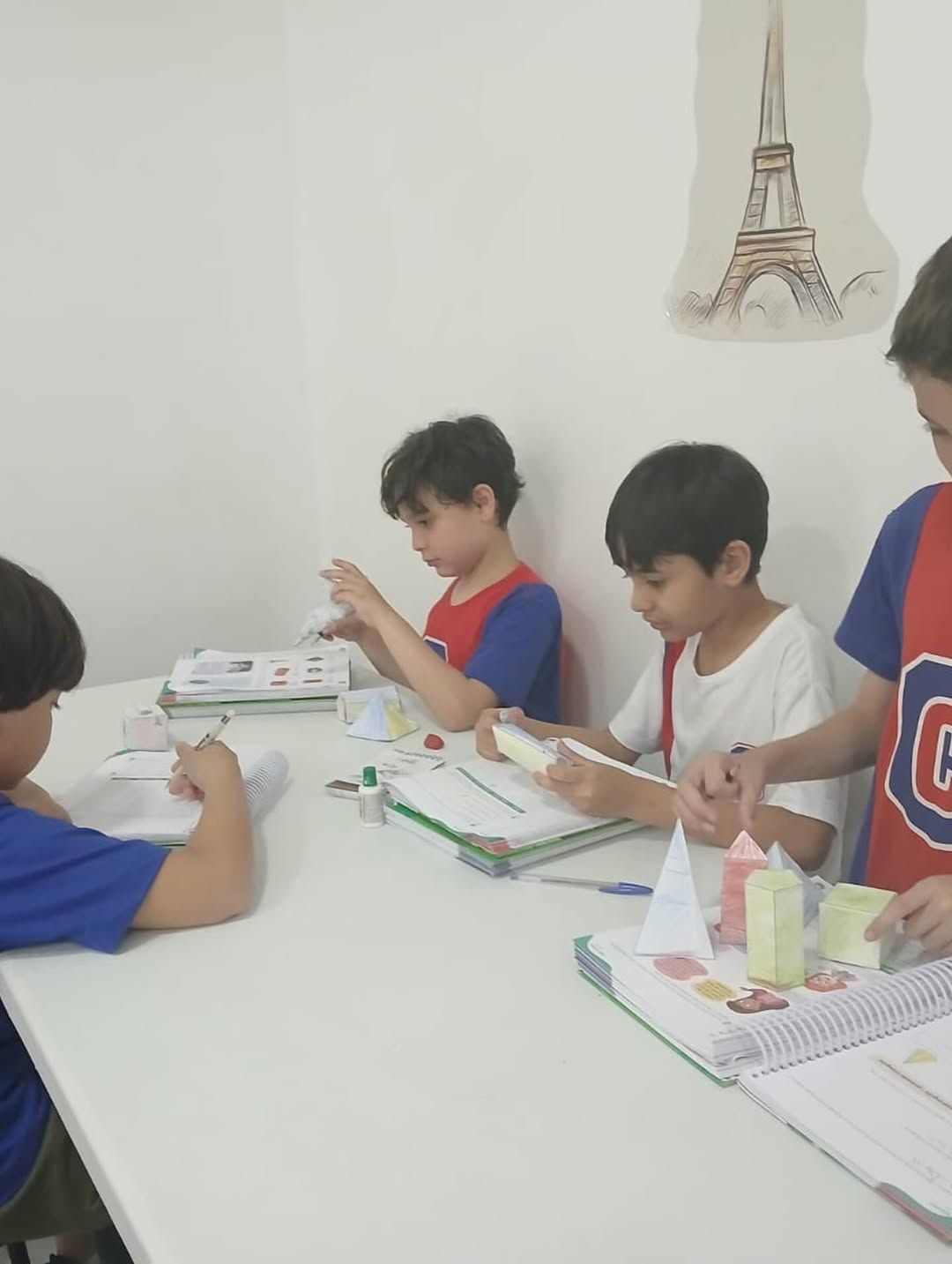 Os alunos do 4º ano B participaram de uma atividade de Matemática voltada ao estudo dos sólidos geométricos.