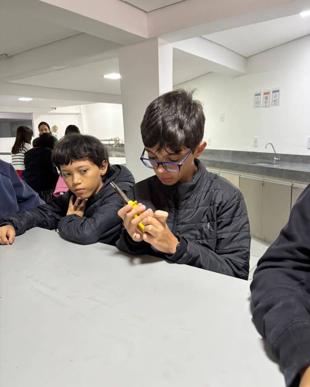 Os alunos do 7º ano participaram de uma aula prática de Física dedicada ao estudo das máquinas simples. A atividade, conduzida pela professora Carol, proporcionou um momento de aprendizagem dinâmica, no qual os estudantes puderam explorar os conceitos de forma concreta e participativa.